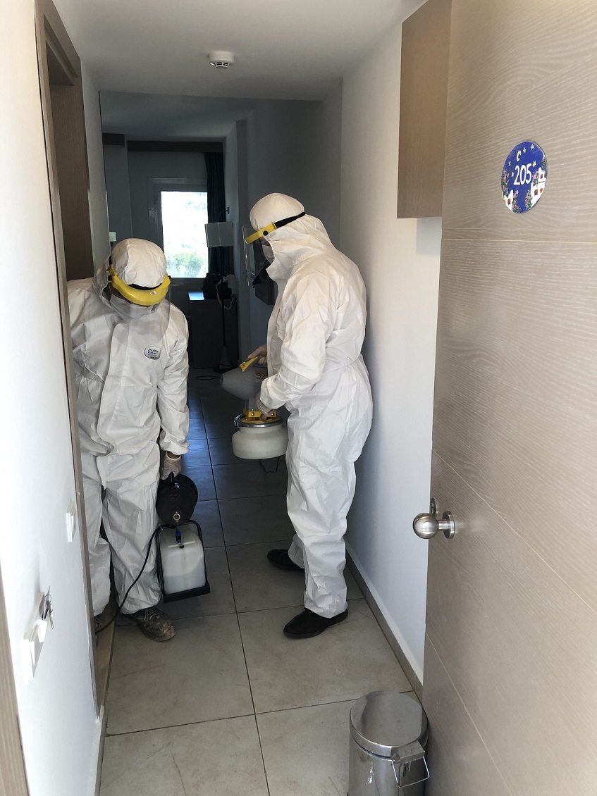 *Odanız size teslim edilmeden önce Dünya Sağlık Örgütünün tavsiye ettiği temizleme yöntemi ile ULV (ultra low volume) makinesi ile dezenfekte edilmektedir.